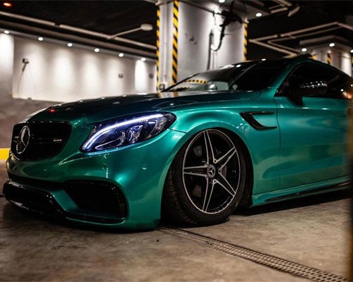 AIRBFTsuspension low-profile cultural refit exchange center will share with you the case:2 doors Benz C-Class W205 slammedenuff minimalist style。 This green Mercedes-Benz C63 is a classic case built by an Egyptian dealer. It is equipped with the AIRBFT air suspension kit, and the perfect posture quality provides players with the best modification plan.