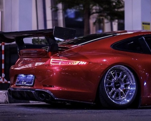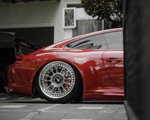 AIRBFTsuspension low lying cultural refitting exchange center will share the case with you:Fashionable posture Porsche 991 slammedenuff speeding at low altitude , this red Porsche 911 991 comes from the Indonesian airbft dealer, the perfect refitting effect creates a fashionable posture style.