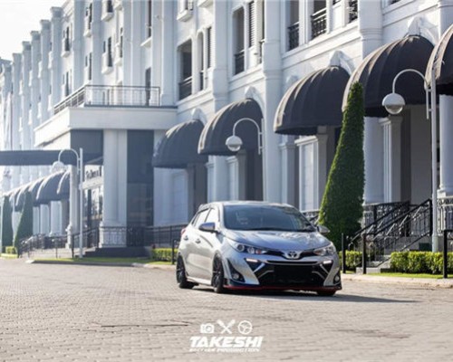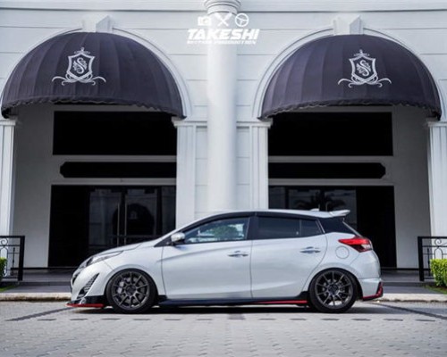 AIRBFTsuspension low lying cultural refit exchange center will share with you the case: Main trend Toyota Yaris slammedenuff not far behind。This Toyota Yaris is the vehicle of a beautiful woman in Malaysia, and she is also a woman who loves refitting. Under the suggestion of BOB in Malaysia, the AIRBFT air suspension kit was refitted. The perfect posture effect makes the beautiful woman I like it very much.