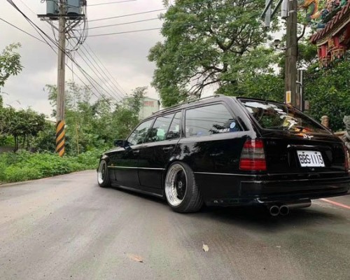 AIRBFTsuspension Fashion Modification Culture Center: Rare breed of old Mercedes-Benz E-class touring slammedenuff new look。Traveling version models are very rare in China, but there are still many players abroad who are particularly fond of this model. For some classic old cars, they are like treasures. Be careful and treasure them. Today we see This Mercedes-Benz E Travel S124 from the 1980s came from a Taiwanese player, and its handsome figure appeared in a brand-new style.