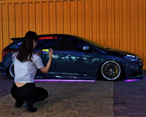 AIRBFTsuspension air suspension modification website:Super cool pose straight Ford Focus slammedenuff. Ford Focus is a very ordinary family car, but there is no distinction between high and low in the modification industry. The main thing is that you can modify it if you like it. Today I will share with you a female player from Inner Mongolia who modified her Focus into her own My favorite appearance, the chassis lighting is matched with the AIRBFT air suspension low profile, the effect is superb, and anyone who sees it will give a thumbs up.