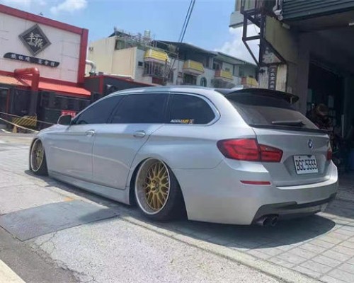 AIRBFTsuspension low-lying cultural modification exchange center to share with you:Touring version BMW 5 Series slammedenuff domineering side leak. The chassis code of the fifth-generation BMW 5 Series station wagon is F11. This model is very rare in China, but it is still good in overseas markets. Today we share this BMW F11 modified AIRBFT air suspension case from a car friend in Taiwan, China , the slender body lying on the ground is really charming.